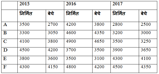 निम्नलिखित तालिका विभिन्न वर्षों में विभिन्न कंपनियों के निर्मित और बेचे जाने वाले लकड़ी के दरवाजे की कुल संख्या दिखाती है।