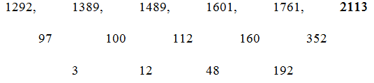 4) 1292, 1389, 1489, 1601, 1761, ?