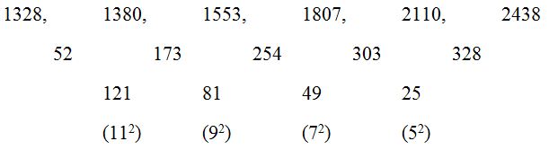 The difference of difference is, 112, 92, 72, 52, ….