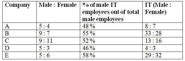 The table shows the ratio of male to that of female employees and the percentage of male IT employees and the ratio of male to that of female IT employees working in those companies.