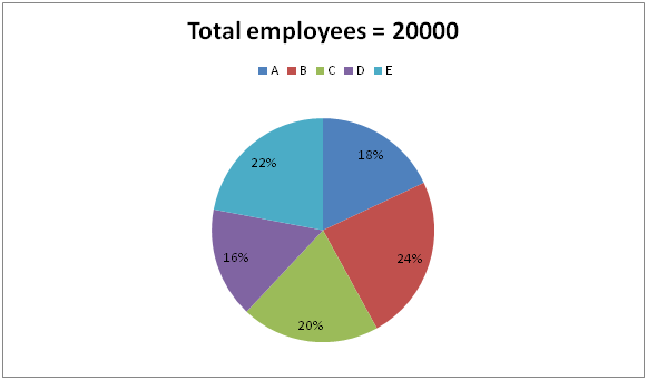 The following pie chart shows the total number of employees (HR + IT department) working in 5 different companies.