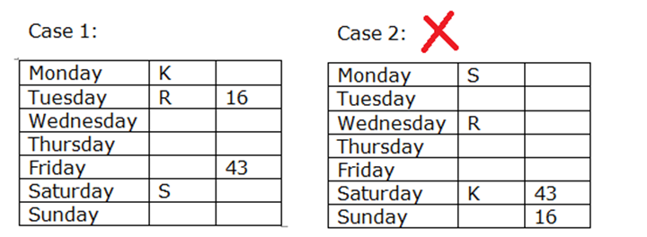 वह जो सबसे छोटा है K के तत्काल बाद भाषण में भाग लेता है। K और S जो सबसे बड़ा नहीं है, के बीच भाषण में तीन से अधिक व्यक्ति भाग लेते हैं। S, ना तो पहले और ना ही सप्ताह के आखिर में भाषण में भाग लेता है।