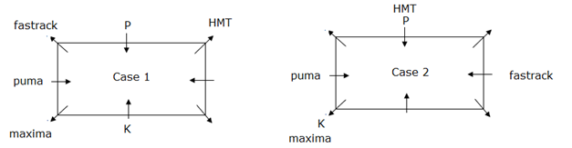 P does not sit at corner. The one who likes puma sits second to the right of P. The one who likes maxima sits immediate right of the one who likes puma. K does not like puma and titan.