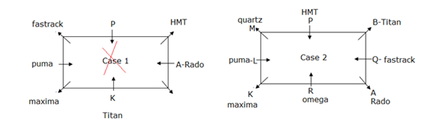 The one who likes Fastrack sits third to the left of K. Only one person sits between the one who likes HMT and the one who likes Fastrack. K is not an immediate neighbour of the one who likes HMT.