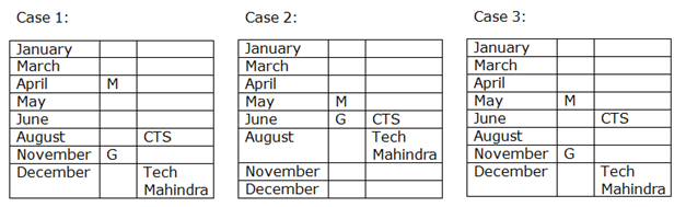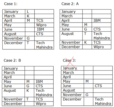 Case 3 will be dropped because two persons were born between T and the one who works in IBM. As many persons were born between T and the one who works in CTS were born between K and the one who works in Wipro, who was born after K.