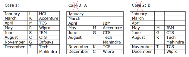 Eight persons C, K, L, M, R, S and T were born in different months January, March, April, May, June, August, November and December. Each one of them works in different company HCL, TCS, IBM, CTS, Accenture, Wipro, Infosys and Tech Mahindra but not necessarily in the same order.