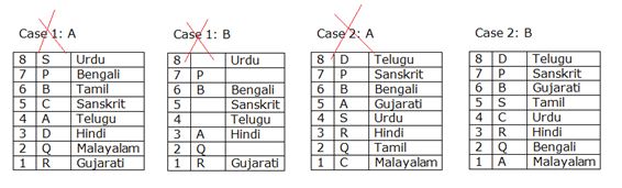 Case 1: B will be dropped because C lives immediately below the one who speaks Tamil.