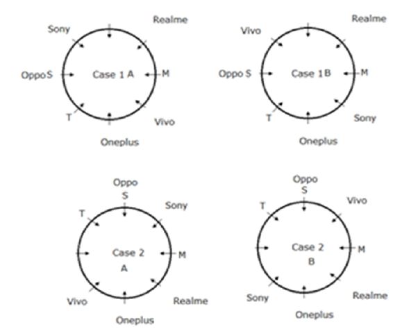 Only one person sits between T and the one who has Sony. Three persons sit between the one who has Vivo and the one who has Sony. T neither have One plus nor have Realme. The one who has Oppo sits immediate left of T.