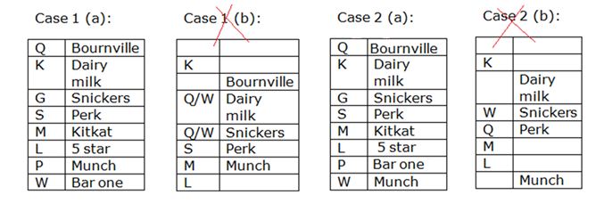 Case 1(b) and case 2(b) will be dropped because as many boxes kept between Box Q and the box which contains perk is kept between Box W and the box which contains Kitkat.