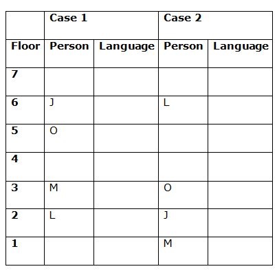 Three floors between L and J who lives in even numbered floor. Two floors are between L and O floors. M lives two below of O’s floor.