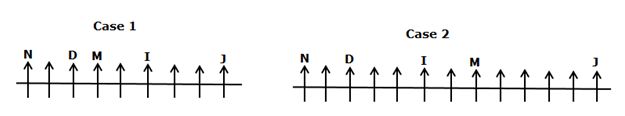 Certain number of persons seating in the linear line facing north. N sits at one end and 2nd to the left of D, so N sits at left end then only N sits left of D. Two persons sits between I and D.