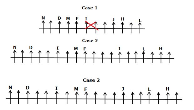 H sits second from one end. So the case 1 gets eliminated. Number of persons in the line is more than square of persons between I and N.