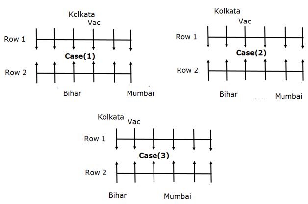 The person from Bihar sits third to the left of the one from Mumbai. The vacant seat of the first row is on the immediate left of one who faces the person from Bihar. The one from Kolkata sits third to the right of the one who faces the person from Mumbai.