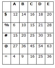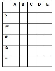 There is a 5×5 matrix which can produce string signals to operate the traffic signals of Green, Red and Yellow light. The rows of the matrix are =, @, #, %, and $ from bottom to top and the columns are A, B, C, D and E from left to right end.