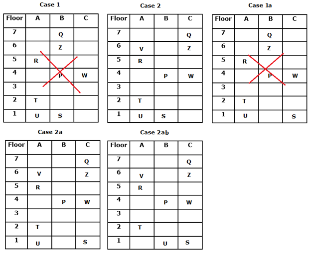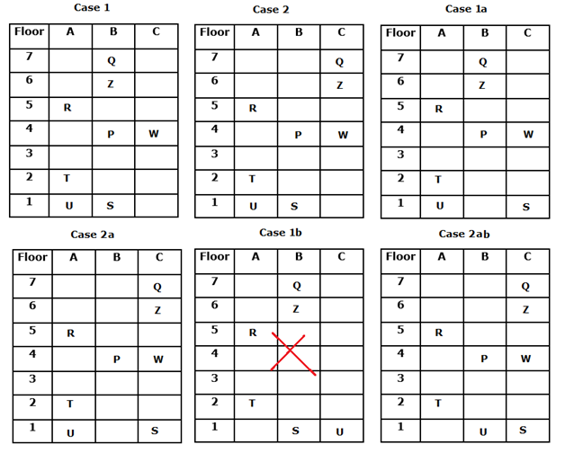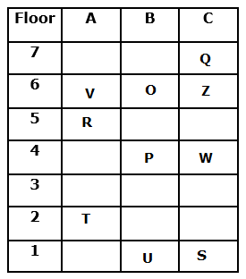 Two floors between W and U but both of them not in same flat. W’s flat is east of P’s flat. P does not lives same flat as R.
