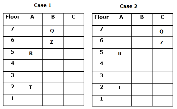 R lives three floor above of T’s floor. T lives even numbered floor in A flat. Z lives north-east direction of R’s flats. Q lives immediate above of Z flat.