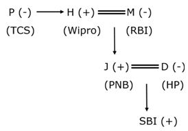 - The one who works in RBI is married to H and is sister-in-law of P, that means P works in TCS.