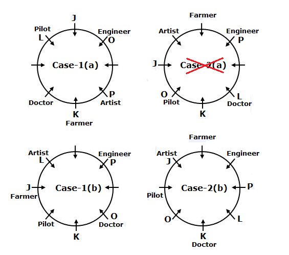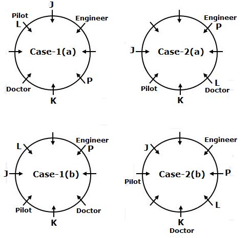The one who is a Pilot sits immediate right of J. P sits opposite to the one who is a Pilot. J is not an immediate neighbour of K. Only two persons are sitting between J and the one who is a Doctor. P is not a Doctor.