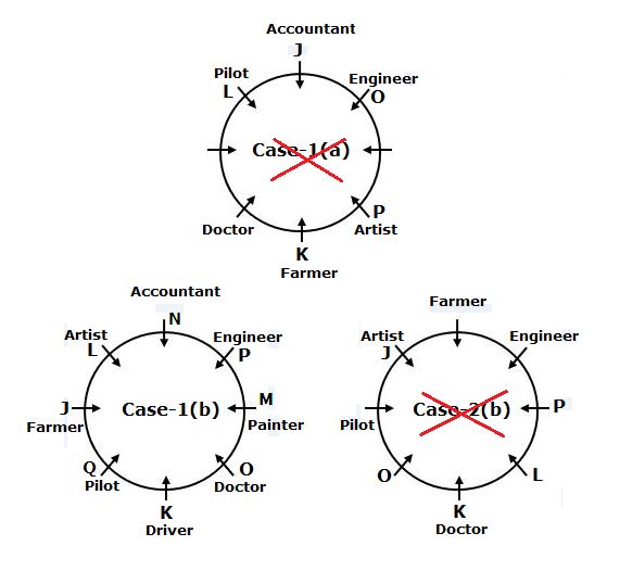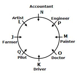Eight persons J, K, L, M, N, O, P, and Q are sitting in a circular table and all of them are facing the centre of the table. They all belongs to different profession viz., Accountant, Doctor, Artist, Farmer, Pilot, Painter, Driver and Engineer but not necessary in the same order.