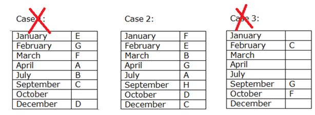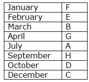 Eight persons A, B, C, D, E, F, G, H was born in different months January, February, March, April, July, September, October and December but not necessarily in the same order.