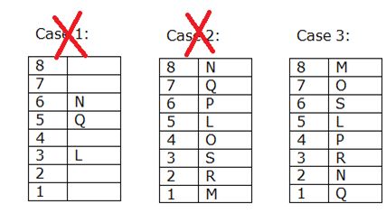 Eight persons L, M, N, O, P, Q, R and S lives in eight different floors. Lowermost floor is numbered as 1, above floor is numbered as 2, and so on. Top most floor is numbered as 8. Person name starts with consecutive alphabet does not live in consecutive floors.