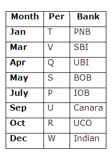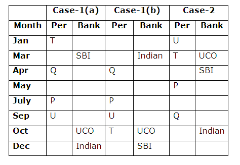The one who is working in SBI was born immediately after T. Q does not work in SBI. As many persons were born after T is same as before the one who is working in Indian Bank. Only two persons were born between the one who is working in Indian Bank and P. T was born either in January or October.