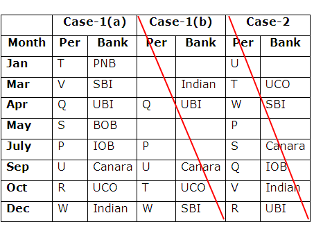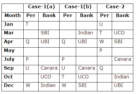Eight persons P, Q, R, S, T, U, V and W were born in different months viz., January, March, April, May, July, September, October and December of the same year. Each of them working in different Banks namely Canara, UBI, PNB, SBI, Indian, IOB, UCO and BOB but not necessary in the same order.