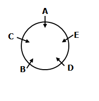 6) Among A, B, C, D and E sitting around a circular table facing the centre, who sits second to the right of C?