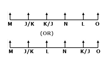 10) Six persons J, K, L, M, N and O sitting in a row facing north. Who among the following sits third from the right end?