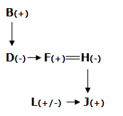 8) In the expression ‘B#D?F@H%J$L’, how is L related to F?