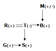 7) In the expression ‘G$S&R@T?B&M’, how is R related to M?