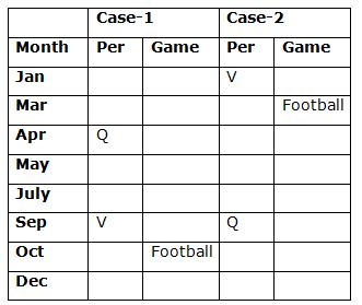 Three persons are born between the one who likes Football and Q. Q does not born in the month which has odd number of days. V was born immediately before the one who likes Football.