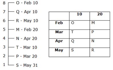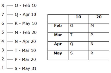 Two people celebrate their birthdays between the birthdays of O and P. S is 2 months exactly younger to T. The one whose birthday come in a month of 31 days lives on the lowest floor while the oldest of them lives on the top floor. N lives on the 4th floor. One person lives between O and R. As many people live between T and S lives between M and Q. Two persons live between the ones whose birthdays fall in the month of April. M’s birthday fall on 20th Feb. The persons whose birthdays fall in the month of March live on the adjacent floors. Two persons live above R. Two persons celebrate their birthday between the birthdays of P and S. N lives on one of the floors above S. Q is older than N. One person lives between T and M.