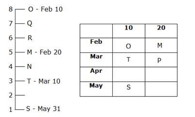 N lives on one of the floors above S. As many people live between T & S as between M & Q live. One person lives between T&M. The persons whose birthdays fall in the month of March live on the adjacent floors. The one whose birthday comes in a month of 31 days lives on the lowest floor.