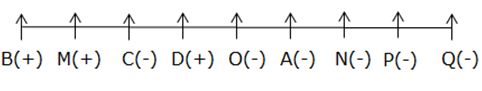 A, B, C, D, M, N, O, P and Q are sitting in a straight line, facing north. Three of them are not females. Two males sit adjacent to each other.
