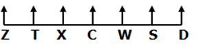 10) C, D, S, T, W, X और Z एक सीधी पंक्ति में बैठे हैं और उत्तर का सामना कर रहे हैं। निम्नलिखित में से कौन W के बाईं ओर तीसरे स्थान पर बैठता है?