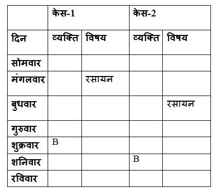 जो रसायन विज्ञान में भाग लेते हैं और B के बीच केवल दो व्यक्ति सेमिनार में भाग लेते हैं। B गुरुवार के बाद सेमिनार में भाग लेते हैं, लेकिन अंतिम दिन नहीं।