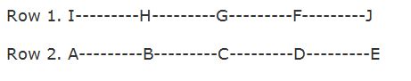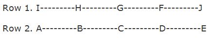 Ten persons are sitting in ten seats in two parallel rows containing five people each, in such a way that there is an equal distance between adjacent persons. In row 1: F, G, H, I and J are seated and all of them are facing in south direction, and in row 2: A, B, C, D and E are sitting and all of them are facing in north direction. Therefore, in the given seating arrangement each member seated in a row faces another member of the other row.