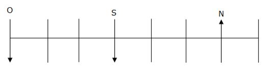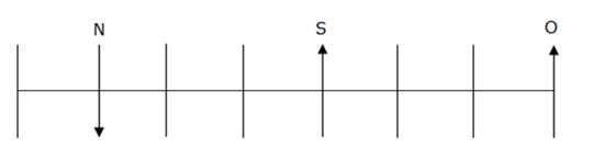 O sits third to the right of S. S sits third to the left of O. N sits third to the left of S.