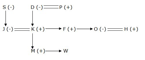 In a family containing 10 members; F and K are siblings. J is the Daughter of S who is the mother-in-law of K. O is the only daughter of P. M is the Nephew of O who is married to H. D is the paternal grandmother of M who is the brother of W. F is the brother of O and he is unmarried. D has only three children.