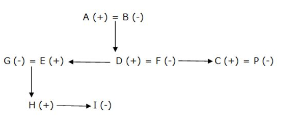 C is the son of A. E is the brother of D. D is the son of B. F is sister in law of E. I is the niece of D. H is the brother of I. G is the mother of H. A is the grandfather of I. C married to P. A has no daughters.