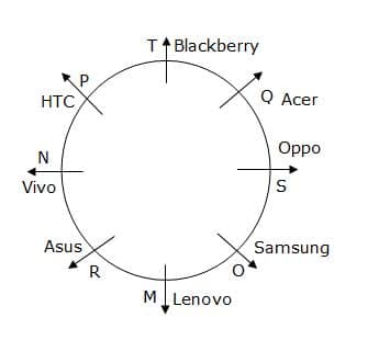 Eight persons M, N, O, P, Q, R, S, and T are sitting around a circular table and all of them are facing not inside. Each of them buys different types of mobiles i.e. Samsung, Blackberry, Acer, Lenovo, Oppo, Vivo, HTC, and Asus but not necessarily in the same order. None of the persons are sitting in alphabetical order.