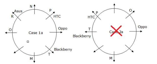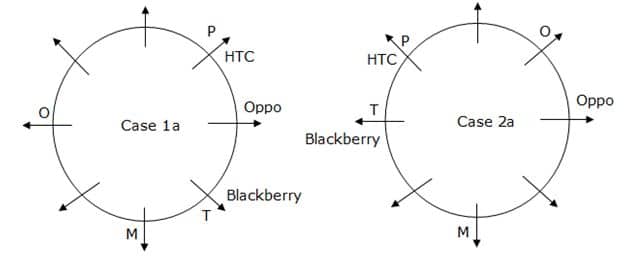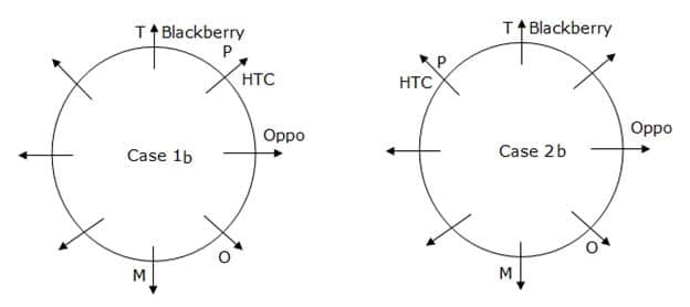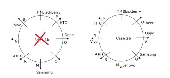 In case 2b, there are two persons sit between the one who buys Samsung and the one who buys Vivo, Q sits second to the left of the one who buys Samsung, this condition is not satisfied, so rejected.