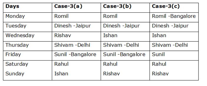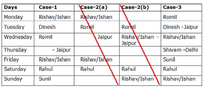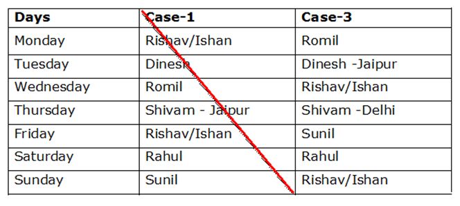 Shivam is playing for Delhi but does not play on Friday. At least one person should play between Dinesh and Rahul. Number of persons play between Dinesh and Rahul is same as number of persons play between Romil and Sunil. Hence, Case-2(a) and Case-2(b) is eliminated.
