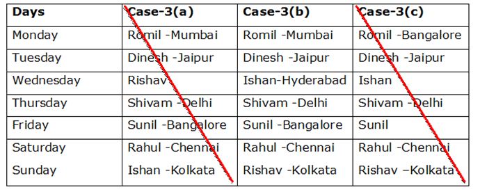 The one who plays for Kolkata plays immediately after the one who plays for Chennai. Sunil neither plays for Chennai nor for Mumbai. Neither Rishav nor Ishan plays for Mumbai. Here Case-3(c) is eliminated. Rishav does not play for Hyderabad. Hence, Case-3(a) is also eliminated.