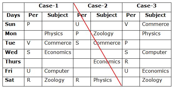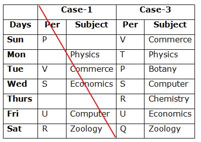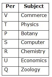 Seven persons P, Q, R, S, T, U and V attend the seminar on seven different subjects viz., Physics, Commerce, Zoology, Botany, Computer, Chemistry and Economics in seven different days of the same week starts from Sunday to Saturday but not necessary in the same order.