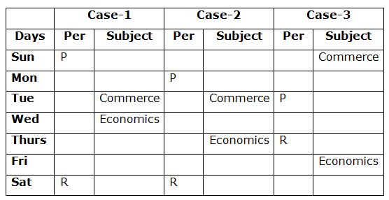 - Three persons attend the seminar between R and the one who attends the Commerce seminar, who attends one of the days before R. P does not attend Commerce and Physics seminars. R neither attends the seminar in Friday nor attends the Economics seminar.