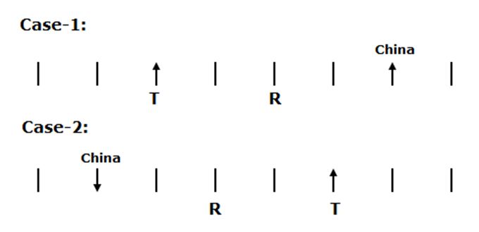 - Only three persons are sitting between the one who belongs to China and T, who sits third from the either ends of the row. T does not face south. R sits second to the left of the one who belongs to China.