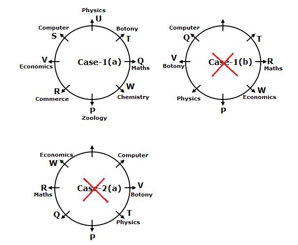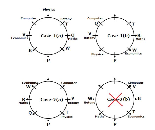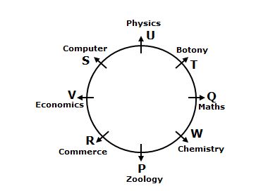 - V sits third to the right of W and sits opposite to the one who likes Maths. P does not like Maths. The one who likes Physics sits second to left of Q. R does not like Physics.