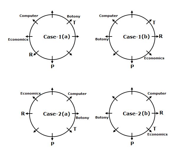- The one who likes Botany sits opposite to R. The one who likes Economics sits immediate right of R. P and the immediate neighbours of P do not like Botany.